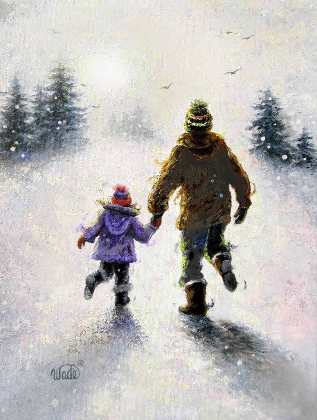Father Daughter Art Print Dad And Daughter Wall Art Winter Playing Dad Christmas Gift Snow Painting Fatherhood Vickie Wade Art Etsy